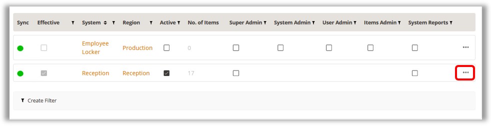 Access tab. In the system list grid at the bottom of the page