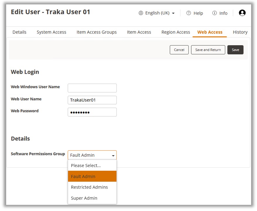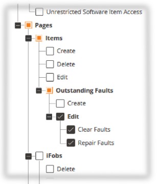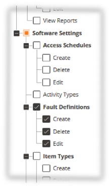To enable a user to create, edit and delete Fault Definitions, or to create/edit and repair/clear faults, they must be given the correct software permissions.