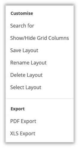 A Layout is a combination of columns you can apply to most of the grids across TrakaWEB. After you have added or removed columns from a particular grid, you can save that particular selection which is known as a 'Layout'. Once saved, the layout will keep the columns in the order which you left them when it was saved.
