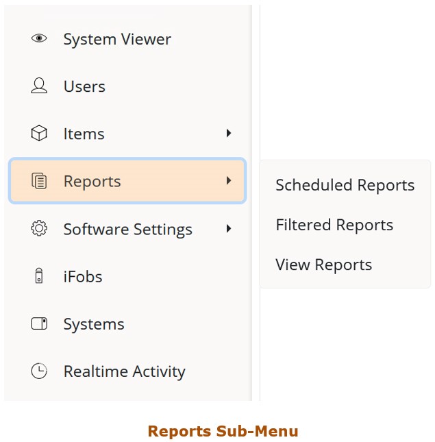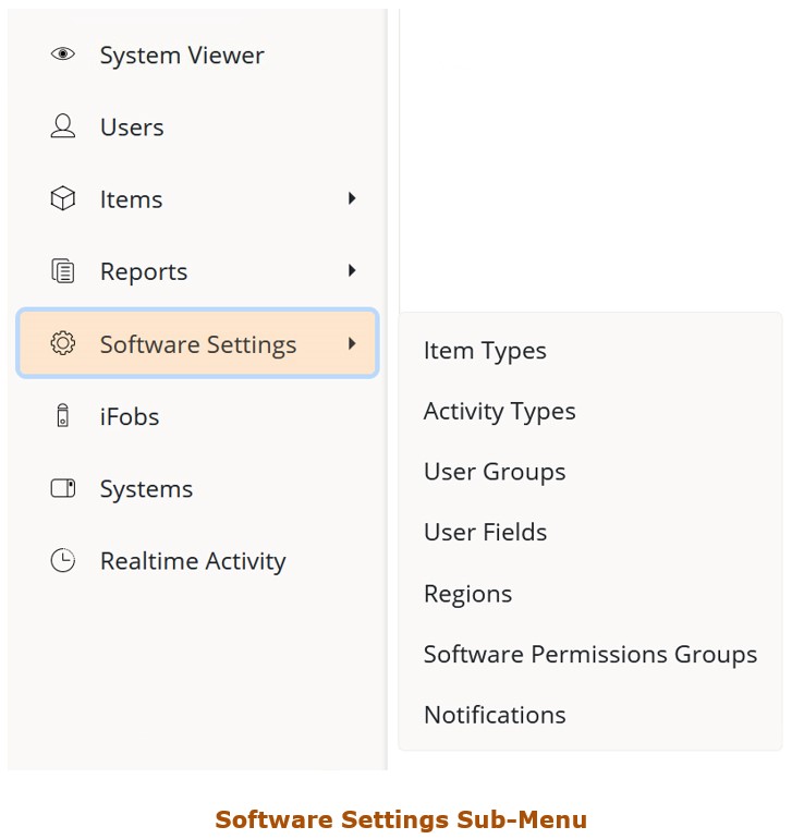 Clicking on these buttons will take you to the corresponding page. However, there are three exceptions to this. Items, Reports and Software Settings have sub-menus that will appear when they have been clicked once.