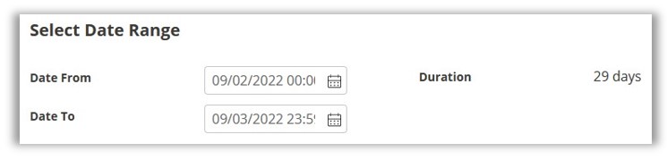 Most of the reports in TrakaWEB use a start and end date to filter search results. Clicking the arrow next to start time/end time will show a small calendar allowing you to select specific times you wish the report to retrieve data.