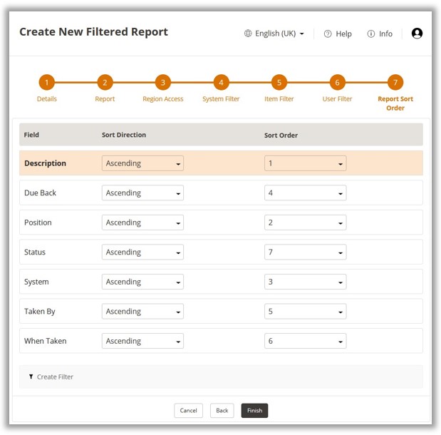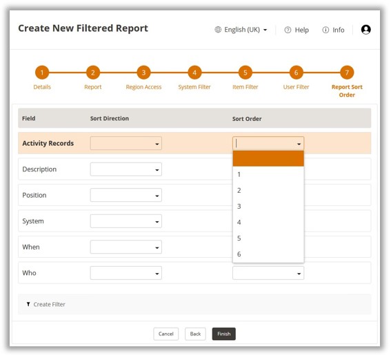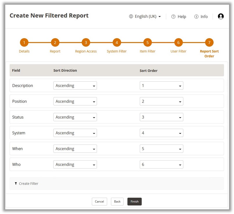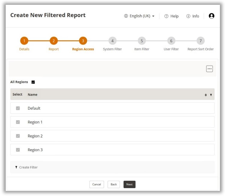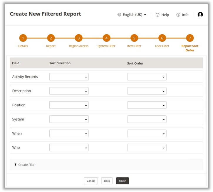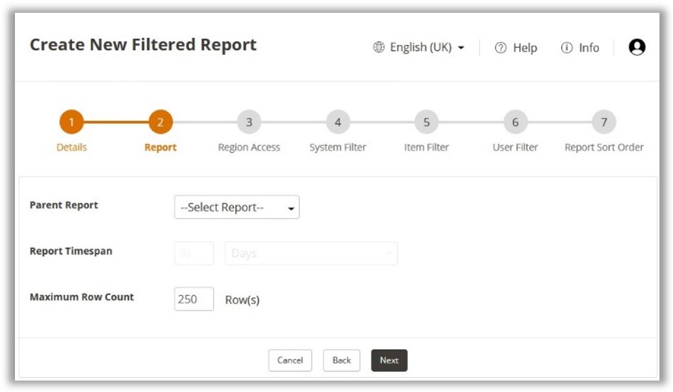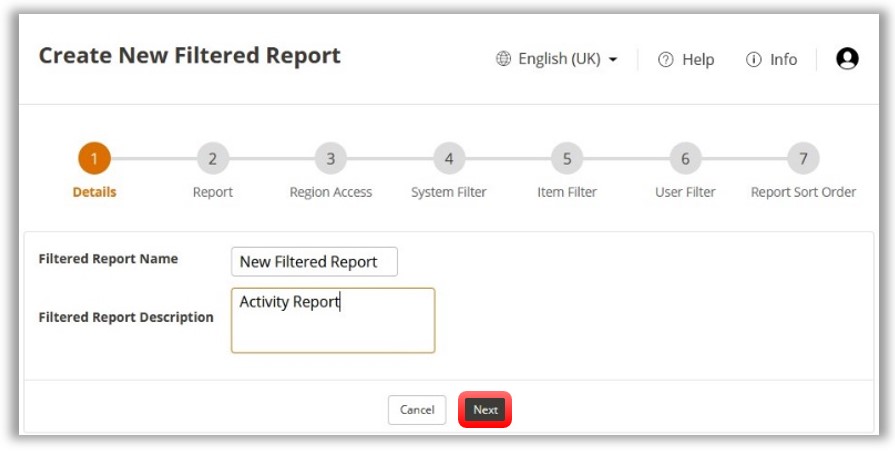Filtered Reports are configured separately from Scheduled Reports, they will however require a Scheduled Report to be created for submission. Configuration of Filtered Reports is divided into 7 steps.