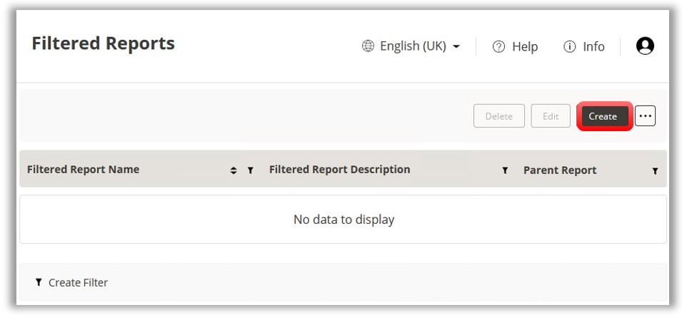 To create a new Filtered Report click Create