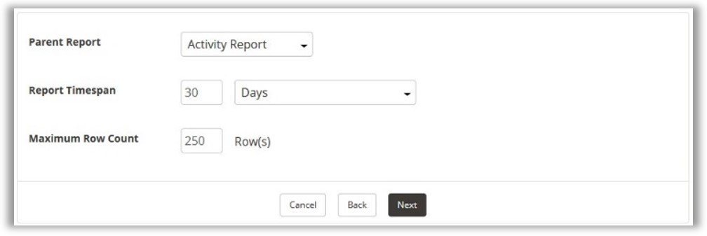 the Report Timespan as well as the Maximum Row Count.